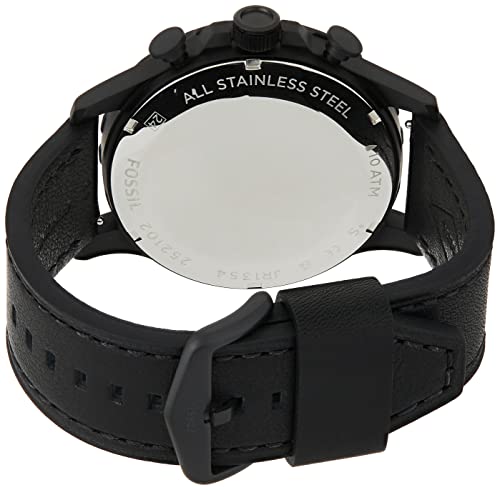 Orologio da uomo FOSSIL, cassa rotonda nera in acciaio inossidabile, diametro 50 mm, finitura opaca, 2 pulsanti neri, struttura resistente alla pressione dell'acqua di 5 ATM, lunetta a corona