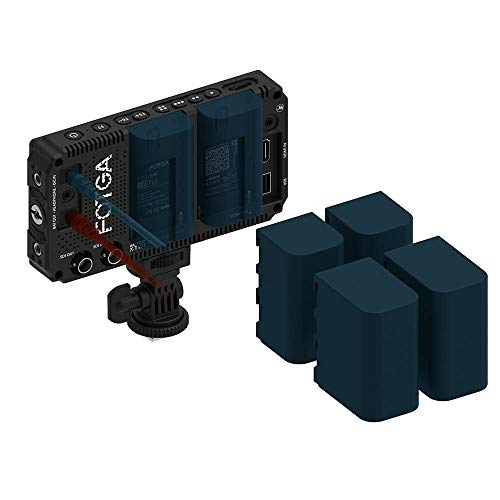Supporta due batterie NP-F e alimentazione CA: doppio vano batteria per batterie NP-F NP-FM/QM, e questo estenderebbe notevolmente l'orario di lavoro. È inoltre possibile utilizzare batterie LP-E6, piastra batteria per LP-E6 deve essere acquistata separatamente. Quando l'alimentazione tramite batteria NP-F o LP-E6 o una batteria fittizia, c'è anche un'uscita della batteria per alimentare la fotocamera direttamente dal monitor.