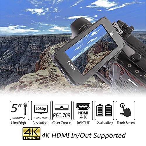 Fotga DP500IIIS A50T Monitor Full HD da 5 pollici, touch screen,1920 x 1080,ingresso/uscita HDMI 4K, doppia piastra batteria NP-F per fotocamera DSLR Mirrorless 5D III A7 A7S A7R II GH5