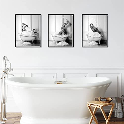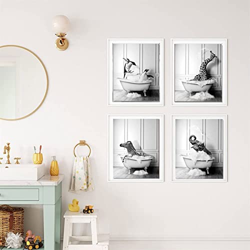Foto di animali in bianco e nero, con animali nella vasca da bagno, stampa artistica, divertente da bagno, decorazione per la casa, senza cornice (20 x 30 cm x 4 pezzi, simpatici animali)