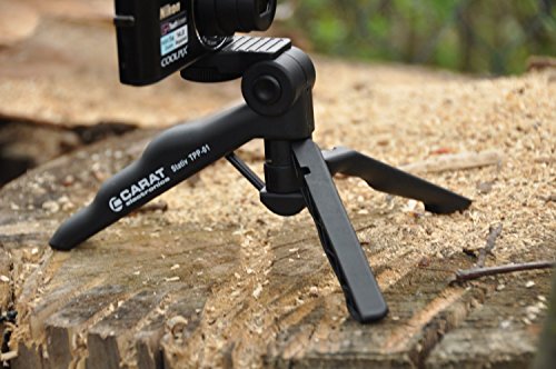 Pratica custodia per fotocamera per la fotocamera compatta. Guscio protettivo Box per la elektonik sensibile. Moschettone per fissaggio su vestiti o tracolla - Set con treppiede pieghevole compatto e manico
