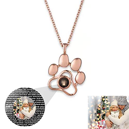 Foto Personalizzata Per Animali 100 Ti Amo Collana Di Proiezione Della Lingua Promemoria D'Amore Unico Anniversario Di San Valentino Festa Della Mamma Gioielli Di Compleanno Ideale(Oro Rosa 24)