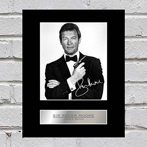 Foto di Sir Roger Moore in posa da James Bond 007, firmata