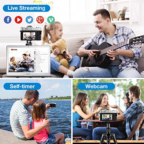 【Fotocamera 4K come telecamera per PC】 La fotocamera per scattare foto può essere utilizzata come telecamera per PC, collegando il PC con un cavo USB e selezionando la "fotocamera PC" per godere di video chat su Skype o streaming live su social media come Facebook, YouTube. Questa videocamera è dotata di un connettore microfono esterno da 3,5 mm e un connettore a vite da 1/4". Rendi le riprese video più convenienti.