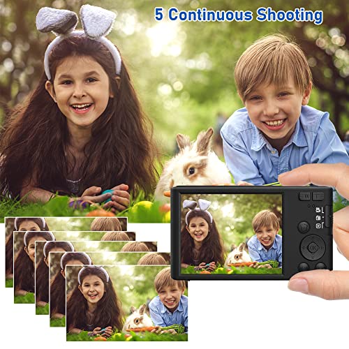 Fotocamera digitale 4K da 48 MP con scheda SD da 32 GB, zoom digitale 16x e messa a fuoco automatica Fotocamera compatta (2 batterie)