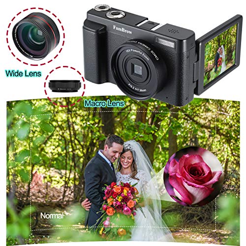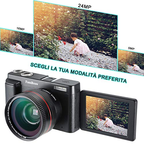 Fotocamera Digitale e Videocamera, FamBrow Full HD 1080P WiFi Camcorder 24MP 16x Zoom Digitale Macchina Fotografica con Obiettivo Grandangolare,3.0 Pollici Rotazione Schermo LCD