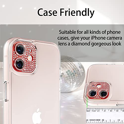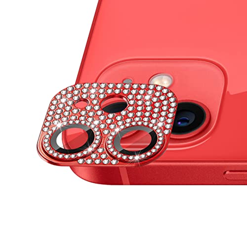 Fotocamera Pellicola Compatibile con iPhone 12, Protezione Fotocamera Posteriore, Diamante Copriobiettivo Anti Graffio Cristallo Protettiva, Senza Bolle-Rosso