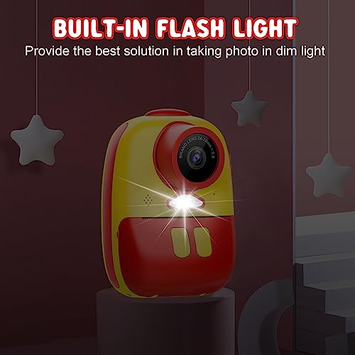Fotocamera a stampa istantanea per bambini, fotocamera digitale per bambini con carta da stampa a inchiostro zero, videoregistratore 1080p con scheda TF 32G e penne colorate per fai da te, giocattoli