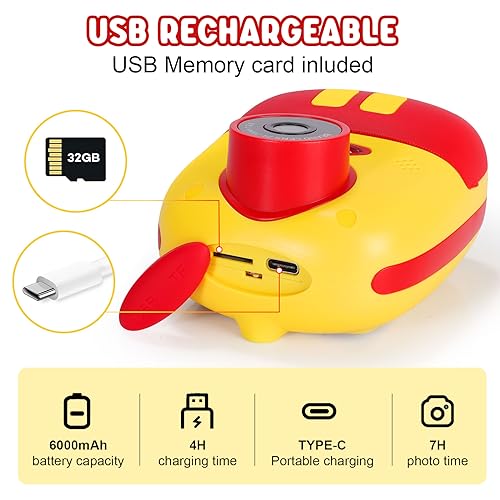 Ottimo regalo per i bambini: il design adatto ai bambini, i materiali atossici e il colore giallo brillante rendono questa fotocamera digitale una scelta regalo perfetta per i bambini per la festa dei bambini, Natal