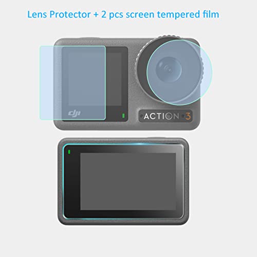 Fotoleey Set di accessori per fotocamera DJI Action 3, pellicola protettiva + kit protezione obiettivo + custodia per il trasporto