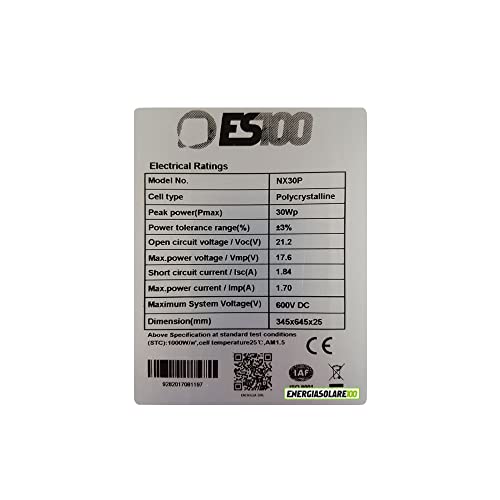 Pannello Solare Fotovoltaico Policristallino 30W 12V Carica Batteria Auto Camper Nautica