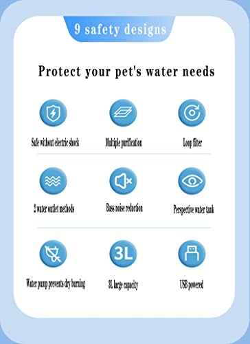 Fontana per gatti con luce a LED: la fontana per gatti dispone di una pompa ultra silenziosa che non fa rumore ed è una buona scelta per un sonno leggero. La pompa dell'abbeveratoio per gatti con luce LED porta una bella luce nella tua casa. Il vostro animale domestico può bere facilmente acqua al buio. La luce blu può monitorare chiaramente il livello dell'acqua. Se il livello dell'acqua è troppo basso, emetterà un po' di rumore. Si prega di aggiungere più acqua