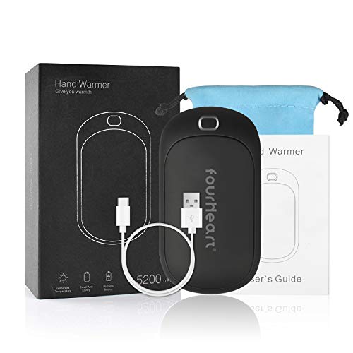 Four Heart Ricaricabili Scaldamani 5200mAh Power Bank, 4 Livelli di Temperatura USB Scaldino Tascabile Riscaldamento Laterale Doppio, Ottima Soluzione per Chi soffre di Raynaud e artrite (Nero)