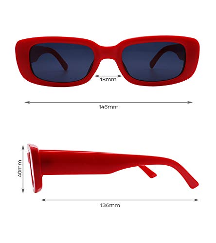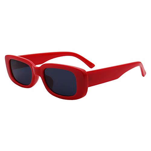 FOURCHEN Occhiali da sole rettangolari vintage da donna e da uomo, alla moda, con montatura quadrata, protezione UV 400, Rosso