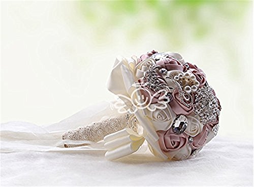 Fouriding Bouquet da Sposa di Lusso Nozza Fiori di Rosa Spilla Strass Diamante Perlato Fiori Artificial Forniture di Nozze Decor