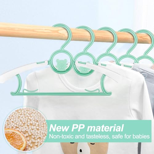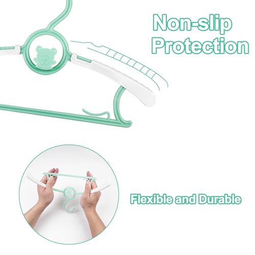 Fousenuk Set di 20 Grucce Appendiabiti Verde, Appendini per Bambini Impilabili Allungabili Plastica con Gancio a Forma di Orsetto, Appendiabiti Bambini Antiscivolo per Unisex Bambino Neonati