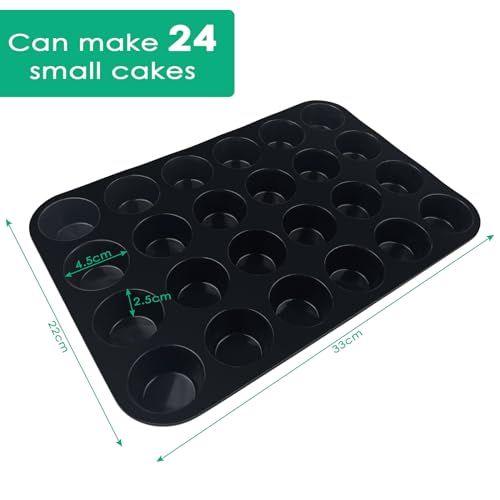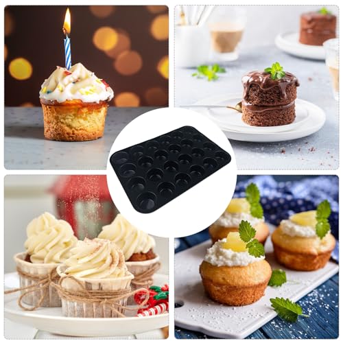 Fousenuk Mini Teglia Muffin, 2 Pezzi Stampo Muffin Stampi SiliconeTeglia per Forno, 33×22×2.5cm Pirottini Silicone Rivestimento Antiaderente, per Muffin, Cupcake, Brownie, Budino, Pasticceria, Nero