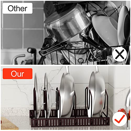 Fousenuk Porta Coperchi Pentole, Organizer Padelle con 7 Scomparti Regolabili, Porta Padelle Salvaspazio, Portacoperchi Regolabile, Supporto per Coperchio in Metallo, Contenitore da Cucina (Bronzo)