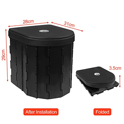 Fousenuk WC Portatile Nero, WC da Campeggio Pieghevole con Coperchio e 2 Rotoli di Sacchetti per Spazzatura, Toilette Portatile Portante da 150 kg per Escursioni, Campeggio, Viaggi Congestione