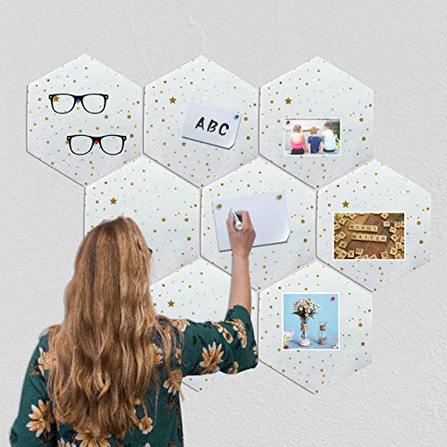 Fovasen - Targa decorativa da parete con retro adesivo, tipo esagonale, in EVA, decorazione per foto, appunti, ecc. per casa, ufficio, classe, decorazione da parete, scuola, 8 pezzi, colore: bianco