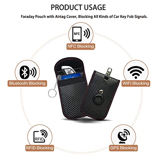 COPERTURA "AIRTAG": Dimensioni della custodia per chiavi dell'auto antifurto 14,5 * 9,5 * 1,2 cm / 5,7 * 3,7 * 0,47 pollici. È disponibile per riporre 2-3 chiavi dell'auto. La porta del dispositivo "Airtag" è aggiunta su il retro del sacchetto di schermatura, che è comodo per posizionare "Airtag", e sarà più comodo da usare insieme. Se non riesci a trovare la chiave dell'auto, puoi utilizzare la funzione di posizionamento "Airtag" per trovare rapidamente la posizione del sacco schermante.