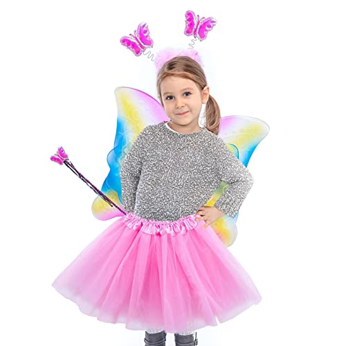 Fowybe Costume da Farfalla per Bambini | Simpatico Vestito da Fata con Bacchetta,Dress Up Party per Halloween, Natale, Compleanno, Cosplay e Altro, Regali Perfetti per i Bambini