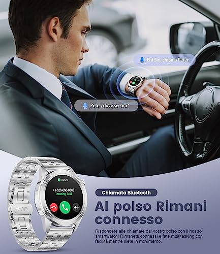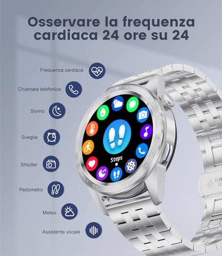 FOXBOX Smartwatch con Banda in Metallo per Uomo, 1,32" Orologio Smart Watch con Frequenza Cardiaca 24/7, Pressione Sanguigna, Monitoraggio del Sonno, 30 modalità Sportive, Chiamate Bluetooth, IP67