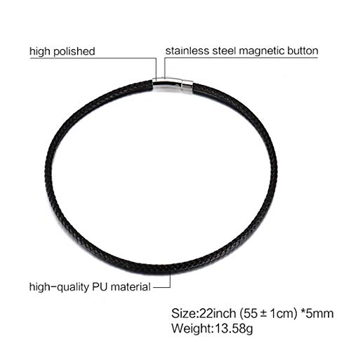 FOXI YOUTH Collana a Catena in Filo di Cuoio Intrecciato Nero da Uomo di Alta qualità da 5 mm 18", 20", 22"