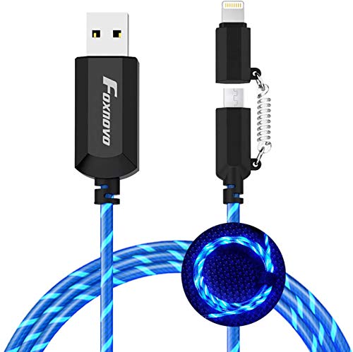 Foxnovo 2018 2 in1 illuminato cavo di ricarica per dispositivi Apple, Android con certificazione Apple MFi [Blu, 1 m]