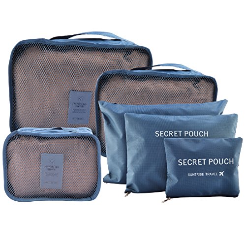 Foxom Organizer per valigie Bagagli Organizzatori Kit 6 Set, 3 Cubi di Imballaggio + 3 Sacchetti - Perfetto di Viaggio Dei Bagagli Organizzatore,Ming blu