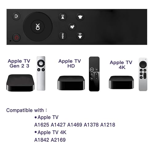 FOXRMT Telecomando universale per Apple TV 4K/Apple TV Gen 1 2 3/ Apple TV HD A2169 A1842 A1625 A1427 A1469 A1378 A1218 senza pulsante vocale