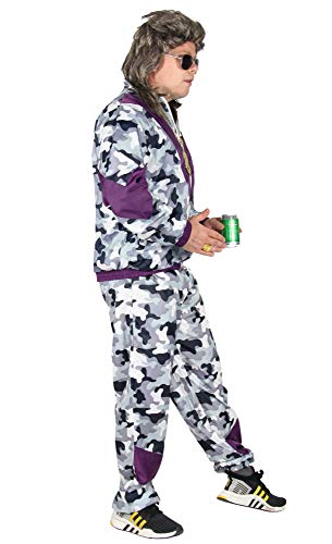 Foxxeo Costume da Uomo in Tuta degli Anni '80 per Carnevale e Festa in Costume, Grigio Mimetico, Taglia L