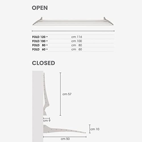Foxydry Fold, Stendino da parete, stendibiancheria da muro richiudibile da balcone da interno o esterno in Alluminio e Acciaio (2x 116 cm)