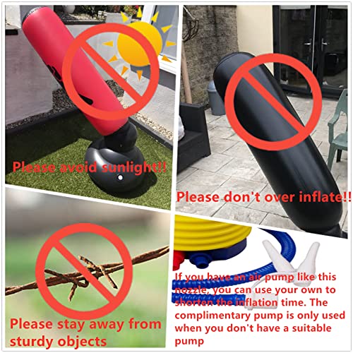 Consigliato Solo per Bambini: Questo sacco da boxe per bambini può assorbire gli urti e proteggerti da incidenti. Quindi non servono guantoni da boxe. Stai lontano da oggetti appuntiti. Non gonfiare eccessivamente. La circonferenza della colonna dovrebbe essere di circa 101 cm~102 cm dopo essere stata riempita d'aria