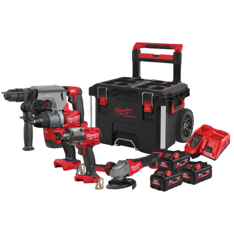 M18 fpp4a2-553p - kit trapano avvitatore + tassellatore + avvitatore + smerigliatrice + packout - 3 batterie 5,5ah - milwaukee
