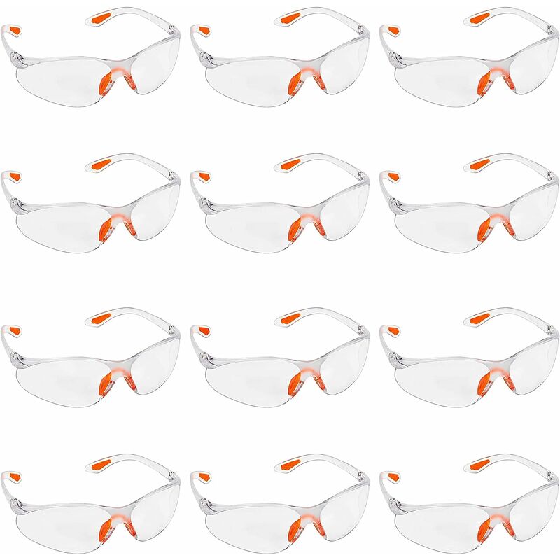 12 OCCHIALI DI SICUREZZA: Sono resistenti ai raggi ultravioletti, alla corrosione e alle fiamme. Poiché questi occhiali avvolgono il viso, si adattano a donne, uomini e bambini senza il rischio di scivolare. OCCHIALI STABILI: Questi occhiali da lavoro hanno un rivestimento antiscivolo arancione sul ponte del naso e sull'estremità delle aste. Questi suggerimenti assicurano che queste protezioni per gli occhi rimangano in posizione anche quando sei piegato su un progetto. Eviteranno che polvere e detriti entrino in contatto con i tuoi occhi. LENTI TRASPARENTI ANTIGRAFFIO: Le lenti sono resistenti ai graffi, il che significa che non si rompono facilmente e proteggeranno i tuoi occhi per molto tempo. Ogni paio di occhiali da costruzione è dotato di protezione contro particelle ad alta velocità e bassa energia e schermi laterali per mantenere gli occhi ben protetti. PER LAVORO E GIOCO: Questo ampio set di occhiali protettivi trasparenti è ideale per lavori in legno e metallo, per lavori di