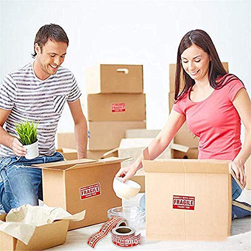 Fragile Warn - Etichette adesive 500/1000 pezzi, con scritta "Handle With Care -Fragile - Thank You", rischio di rottura fragile, etichetta rossa per pacchetto, etichetta adesiva