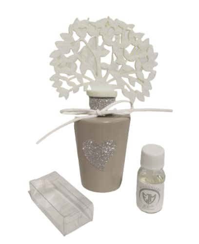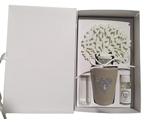 FRAGRANCE Profumatore diffusore Brill Albero della vita TORTORA con cuore argentato glitter h.17 SCATOLA REGALO