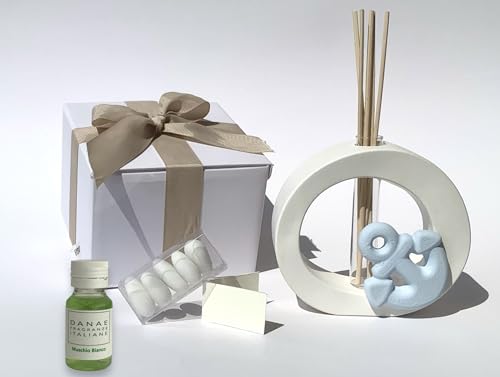D A N A E FRAGRANZE ITALIANE bomboniera profumatore Ancora Design in Marmo 11x12 con Scatola Nastro del Colore a Scelta Confetti, bigliettino Personalizzato e fragranza