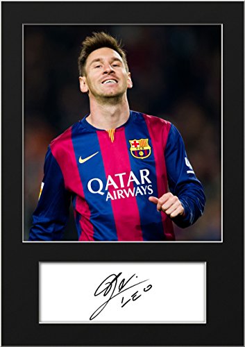 FRAME SMART Lionel Messi | Foto Montata, Firmata Reprint | Dimensione A5 per Adattarsi a Cornici 6x8 Pollici | Ritaglio di Precisione | Display Fotografico | Regalo da Collezione