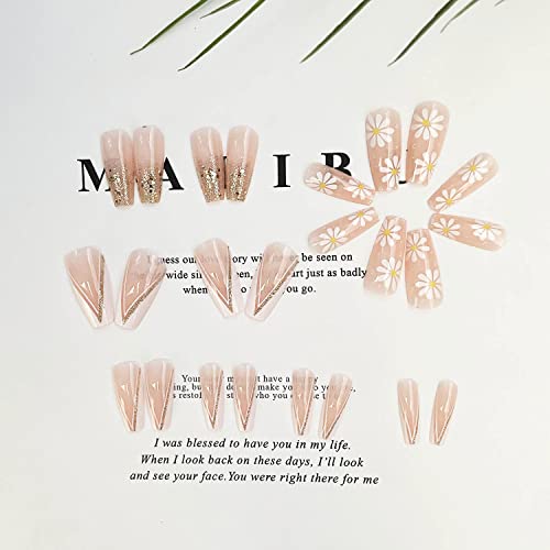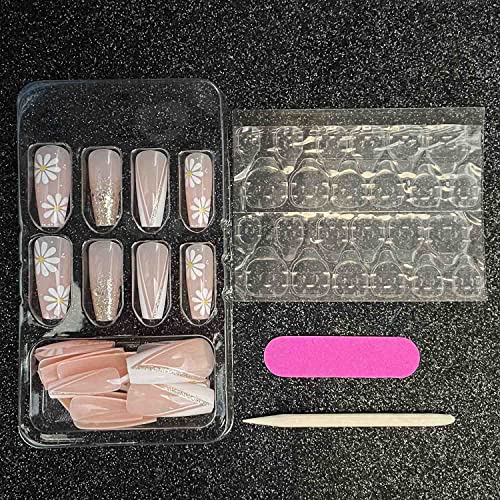 Unghie finte con fiori finiti con copertura completa, lo stile di design glitterato è creativo e alla moda, adatto per gli amanti della moda.