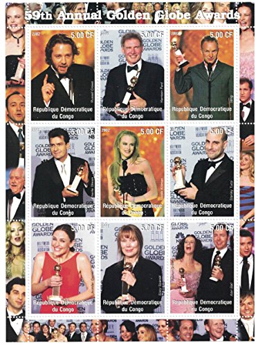 Francobolli - Perforfated timbro foglio con 59TH Annual Golden Globe Awards/Russell Crowe/Harrison Ford/Nicole Kidman/Repubblica Democratica del Congo