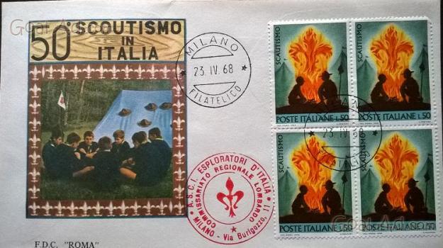 Francobolli Scoutismo 1968 L 50. Busta con annullo primo giorno d'emissione