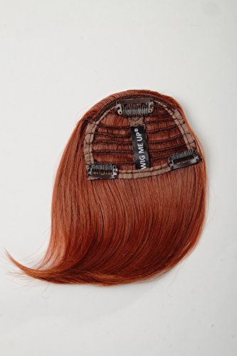 Bella frangetta a clip, ricurva, di fibra resistente al calore, con leggera riga, stilyng personale, di colore rosso ruggine/rosso. Lunghezza: circa 15 cm. Larghezza: circa 11 cm (metà). Codice colore: 130.
