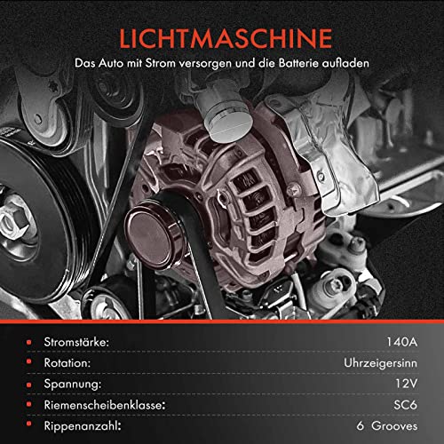 Frankberg Generatore alternatore compatibile con A4 8K2 B8 2.0L 2007-2015 Golf VII 5G1 BE1 1.4L-2.0L 2012-Heute Replace# 03G903016B