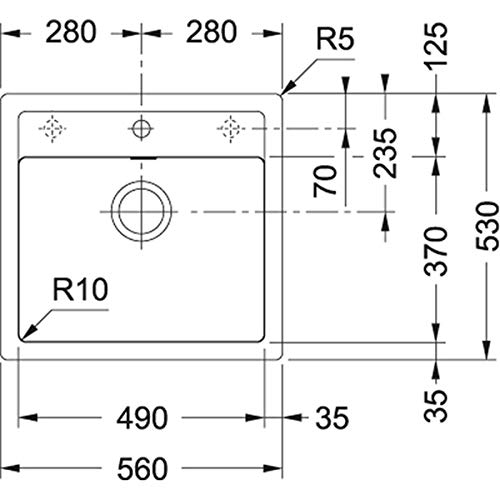 Dimensioni del bacino: 490 x 370 x 200 mm