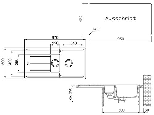 Franke Basis BFG 651 Grigio pietra Lavabo in granito Lavello aperto Lavello cucina Dissipatore di edizione