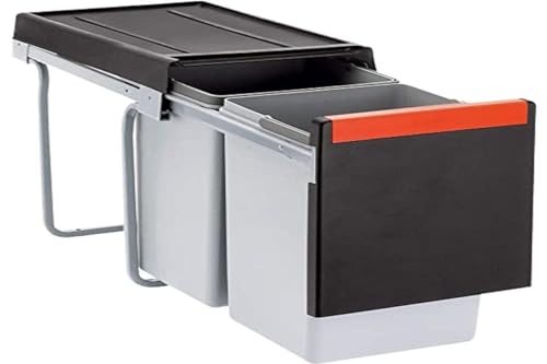 Franke Cube 30 - Pattumiera per la raccolta differenziata a scorrimento telescopico, 2 bidoni con capacità da 15 litri