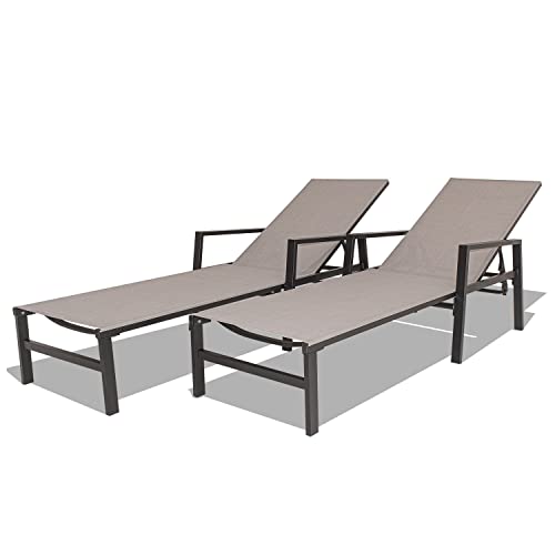 FRANKYSTAR Tigri - Set di 2 lettini da giardino in alluminio e textilene. Lettini prendisole di design con braccioli e schienale regolabile in 5 posizioni. Grigio chiaro o turchese.