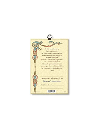 Fratelli Bonella | Quadro Sacro su legno MDF di pioppo 8mm con Mosaico in lamina dorata di un ragazzo che riceve la Prima Comunione con Preghiera sul retro 10 x 15 cm | Made in Italy